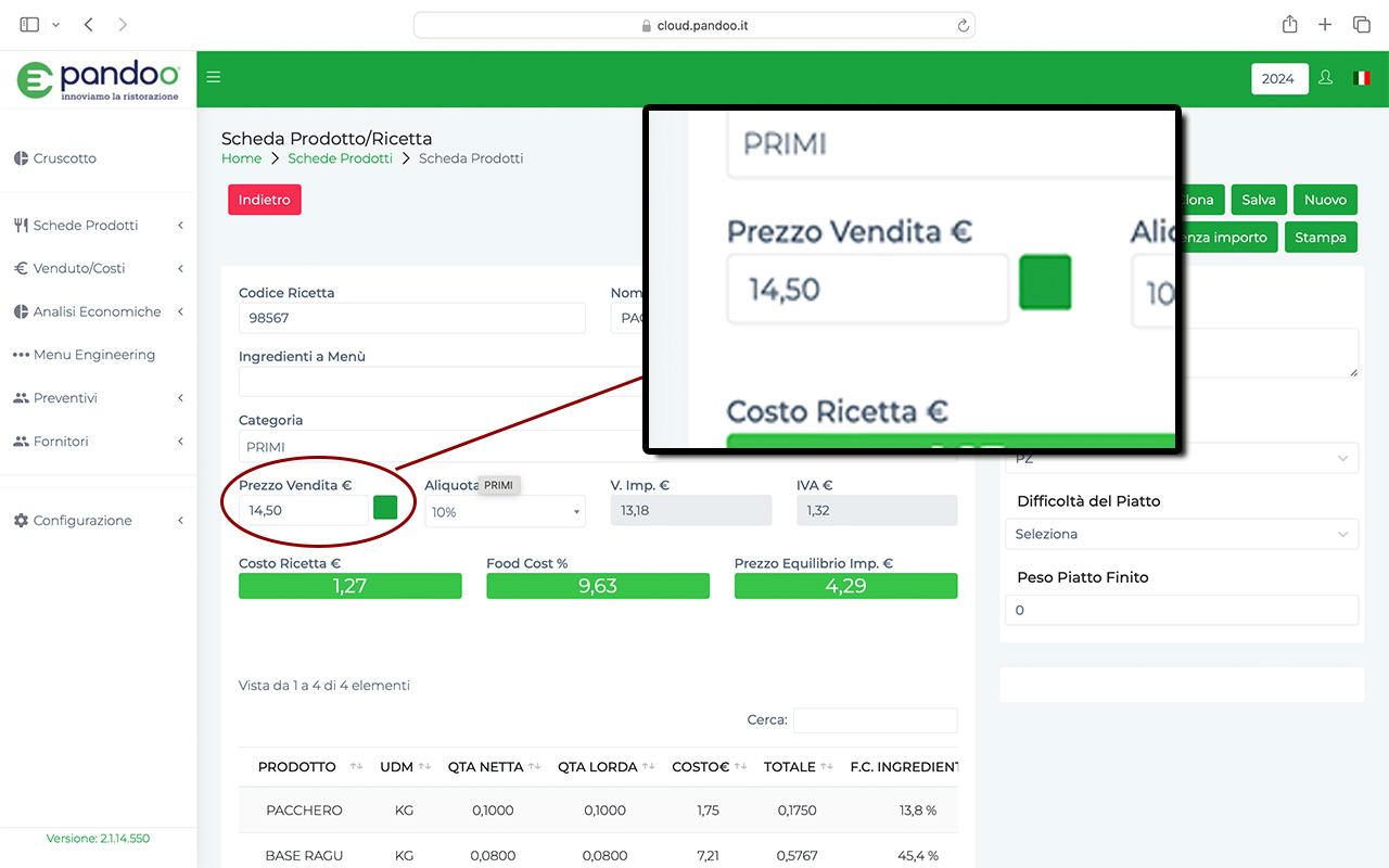 Scegli PANDOO per gestire al meglio i prezzi dei tuoi piatti e garantire un utile reale per il tuo ristorante.